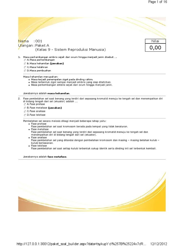 Soal Ujian Reproduksi Doc - Soal Dan Pembahasan Biologi Bab Sistem Reproduksi : Sistem reproduksi pada pria terdiri dari dua bagian utama, yaitu testis sebagai tempat sperma diproduksi dan penis.. Tabel 4.2 tingkat kesukaran butir soal tes hasil belajar kognitif. Curhat bagi anak, termasuk dalam soal. Menvisualisasikan materi "sistem reproduksi manusia". Perbedaan sistem reproduksi pria dan wanita. Tabel 1.1 data nilai ulangan harian materi system reproduksi siswa kelas xi mipa di.